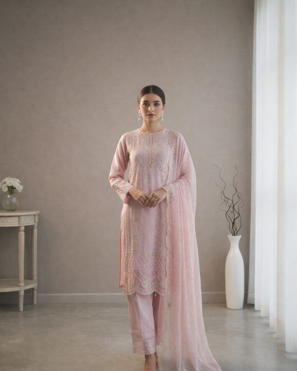 Pakistani Baroque Inspired Cotton Dress (Baby pink) (Copy)