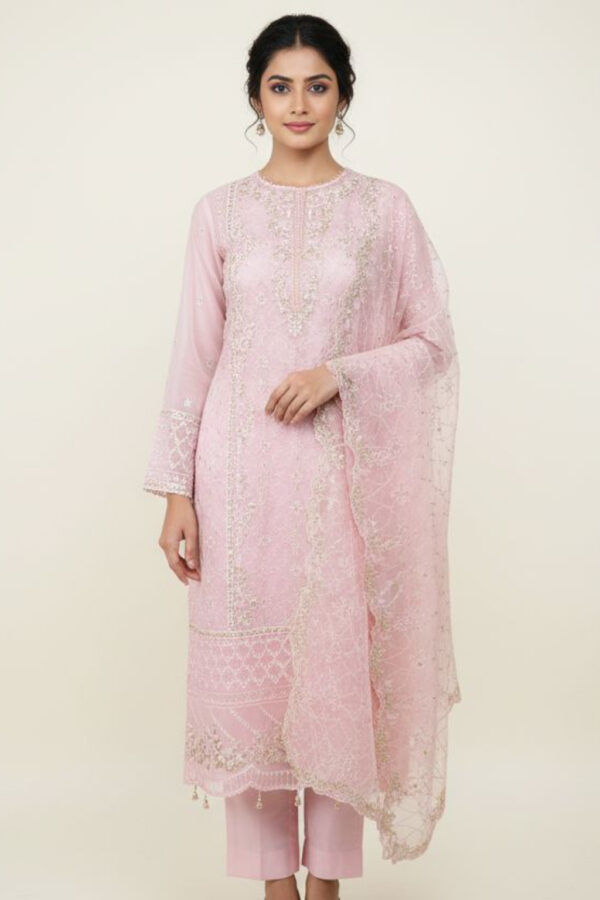 Pakistani Baroque Inspired Cotton Dress (Baby pink)