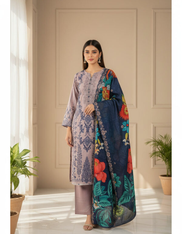 ✨ The Dupatta: Crafted from luxurious digital printed lawn with embroidered panel on both side, the dupatta features a stunning, flowing design that drapes beautifully and adds a touch of grace to your look.