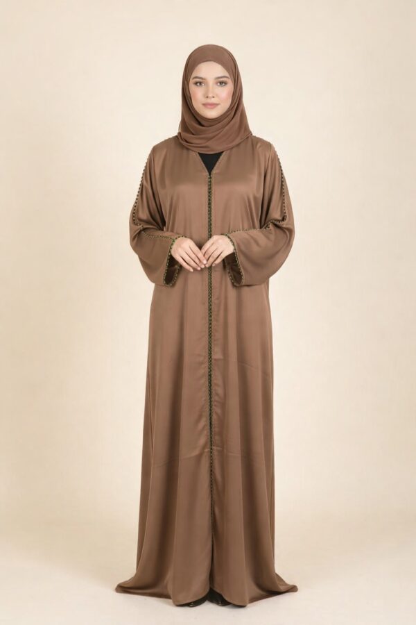 Premium Abaya with Hijab – Dubai Jafran Fabric (Brown)