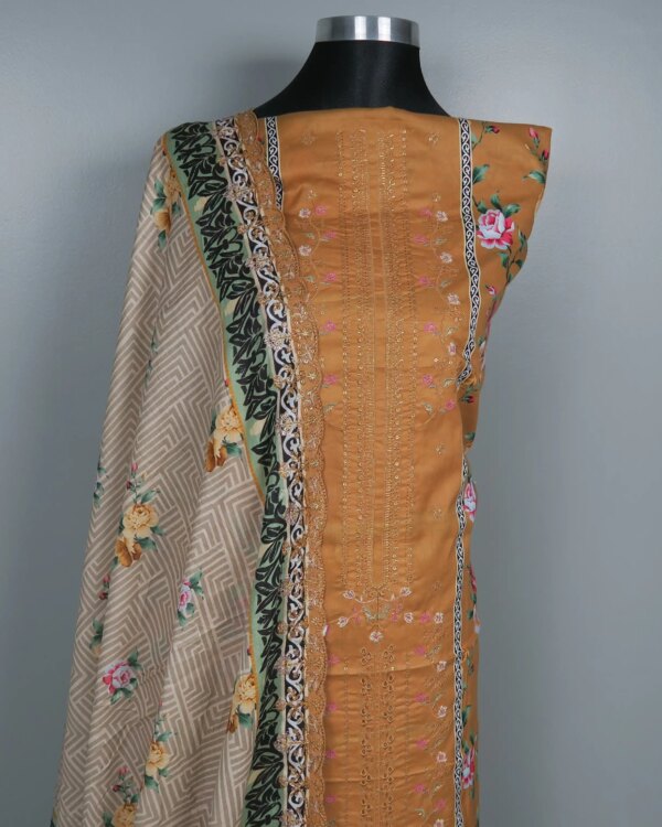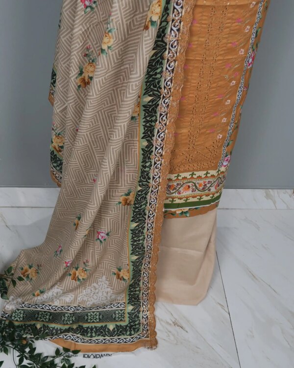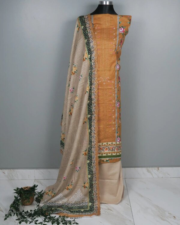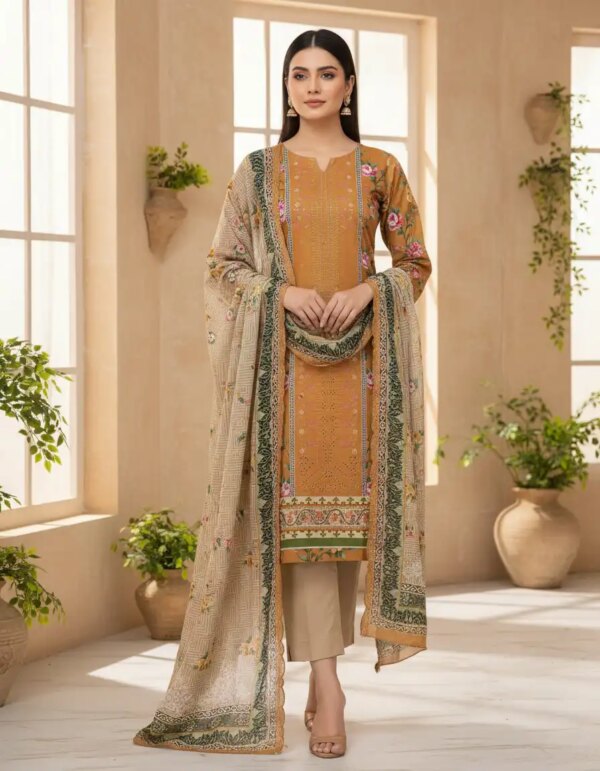 Tawakkal Inspired luxury Lawn 3-Piece Suit (Golden Brown)